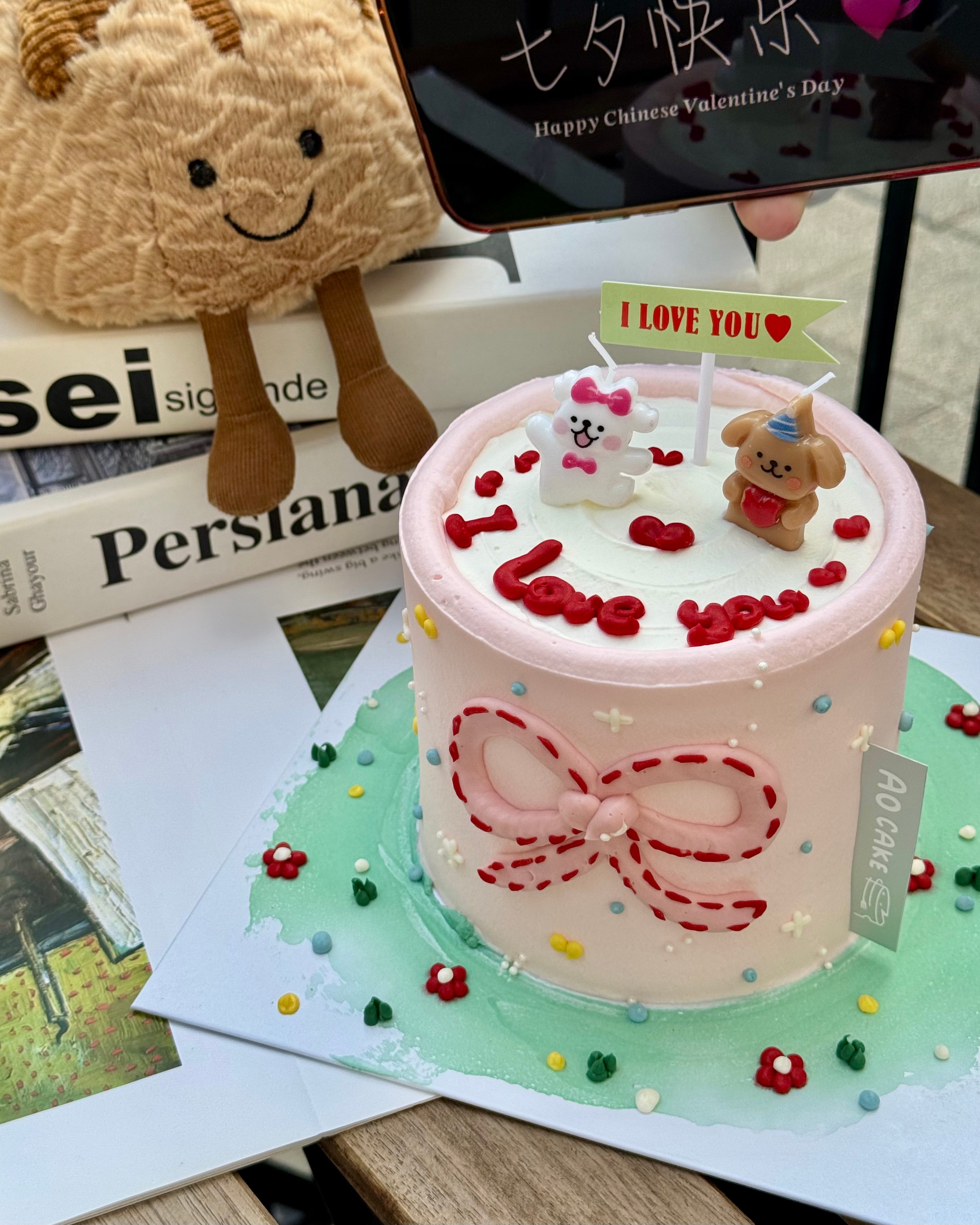此款蛋糕为鲜奶油蛋糕,小涂鸦为奶油霜成分。 我们会根据您不同尺寸的选择去随机搭配适量的装饰。 注意:图片中的“I Love You”为随机装饰,颜色不会一模一样。
