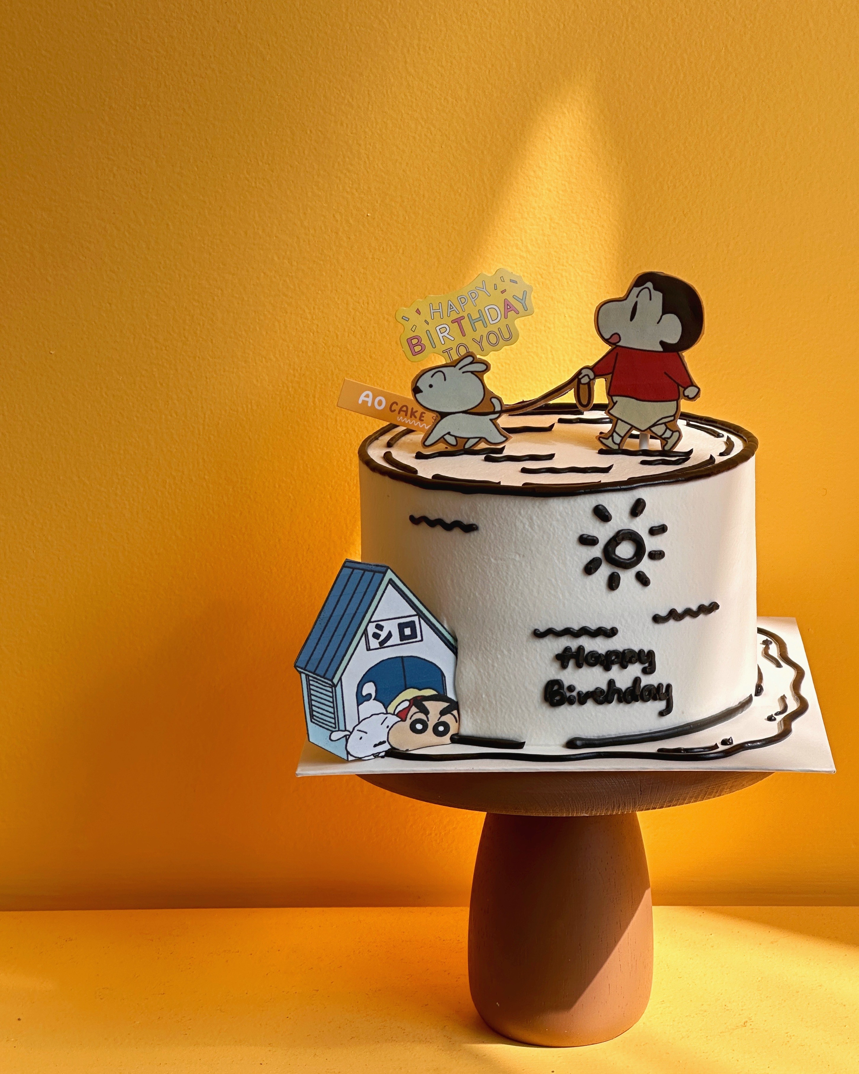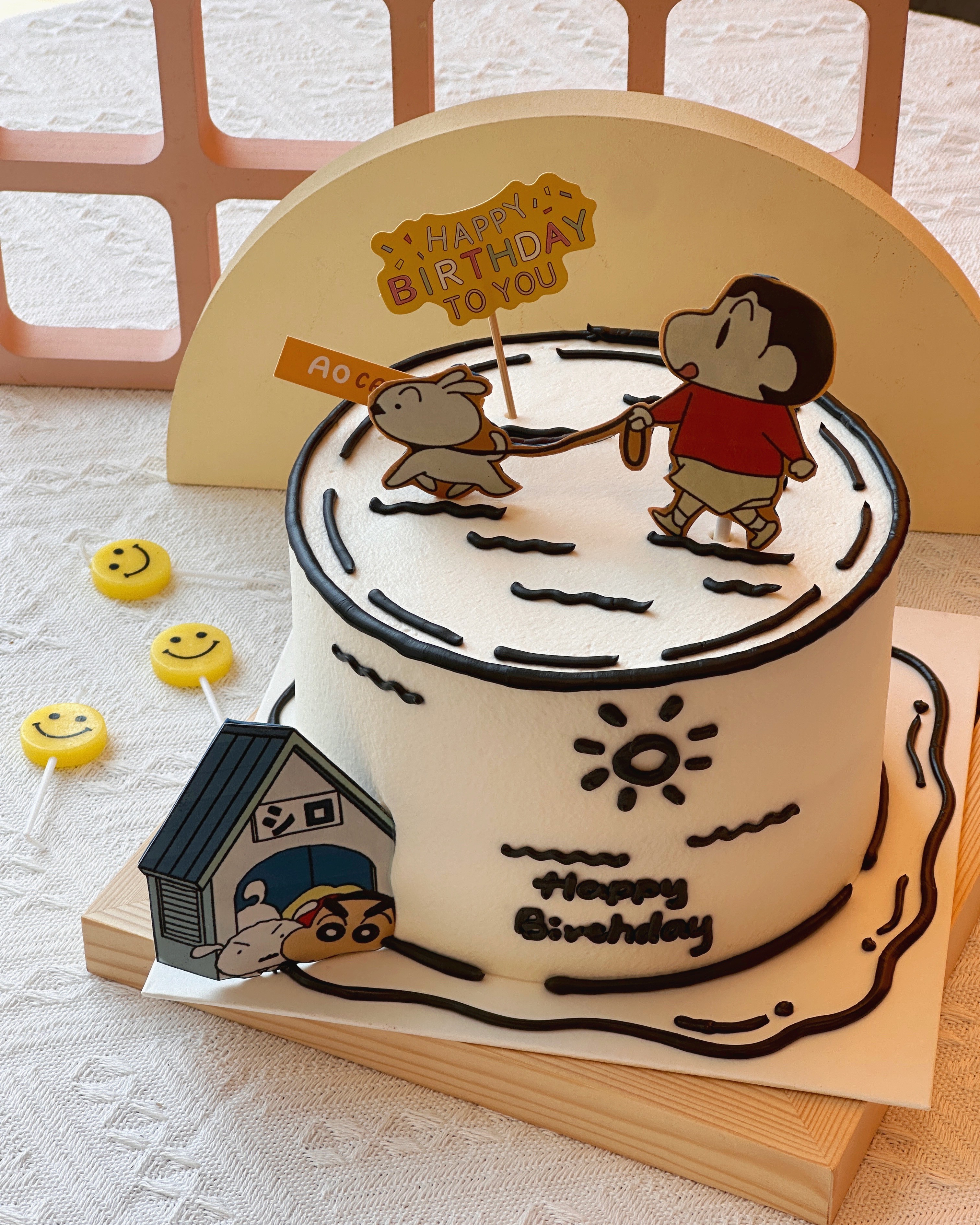此款蛋糕为鲜奶油蛋糕,文字和小涂鸦为奶油霜成分。 我们会根据您不同尺寸的选择去随机搭配适量的装饰。 注意:图片中的小新图片为可食用的糯米纸材质, 糯米纸虽然是可食用材料,但本身并没有什么味道;如果您不想吃的话可以揭下来。