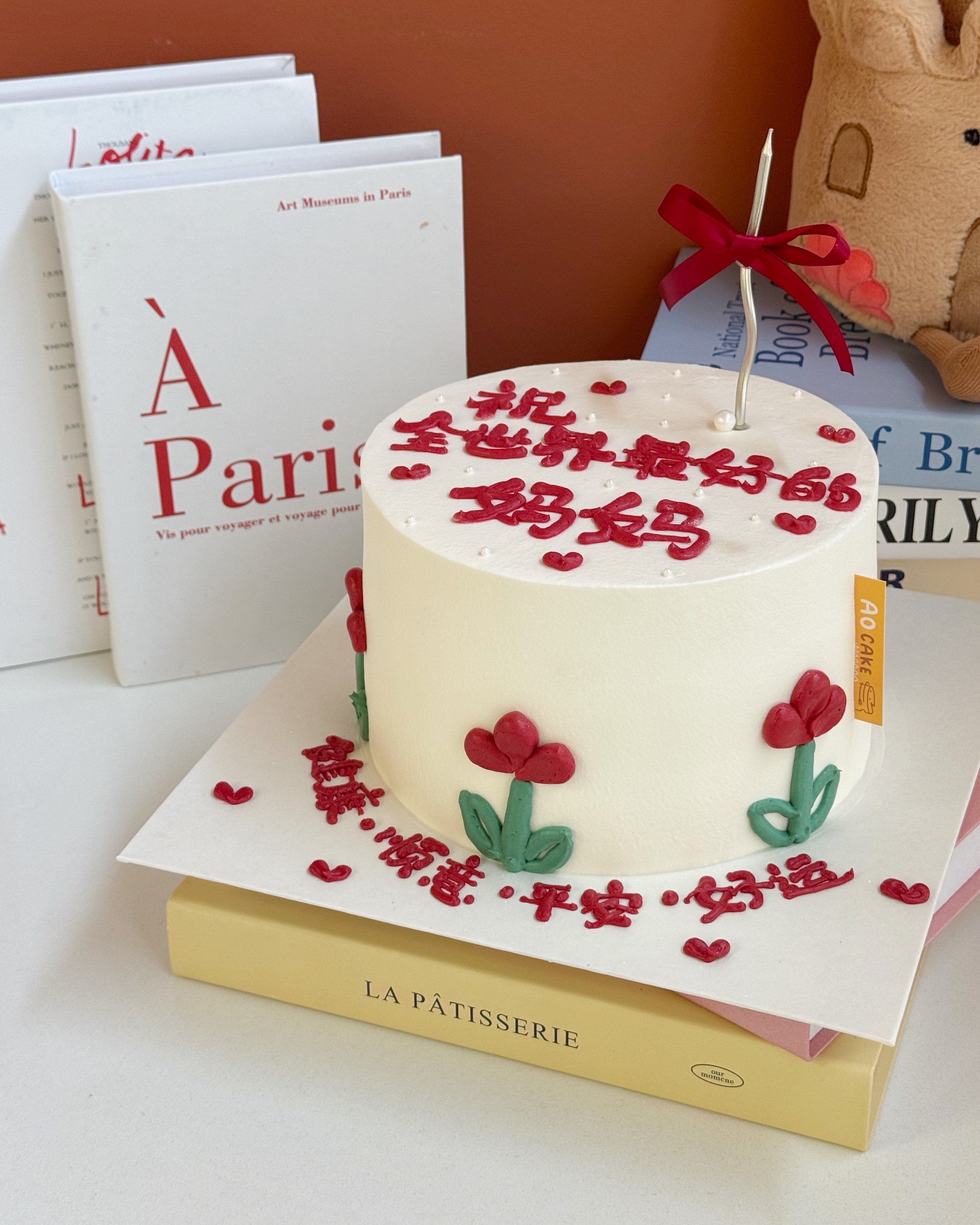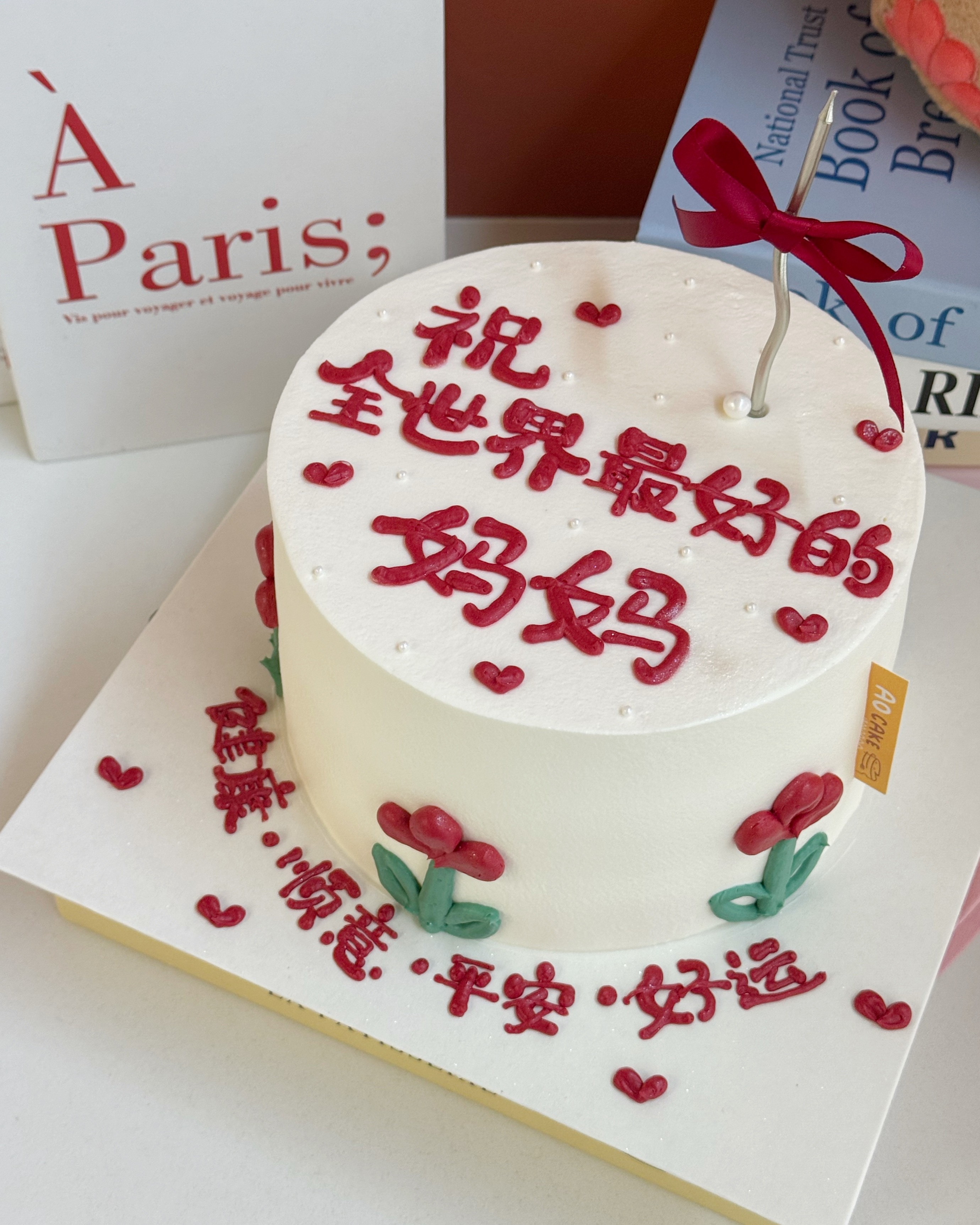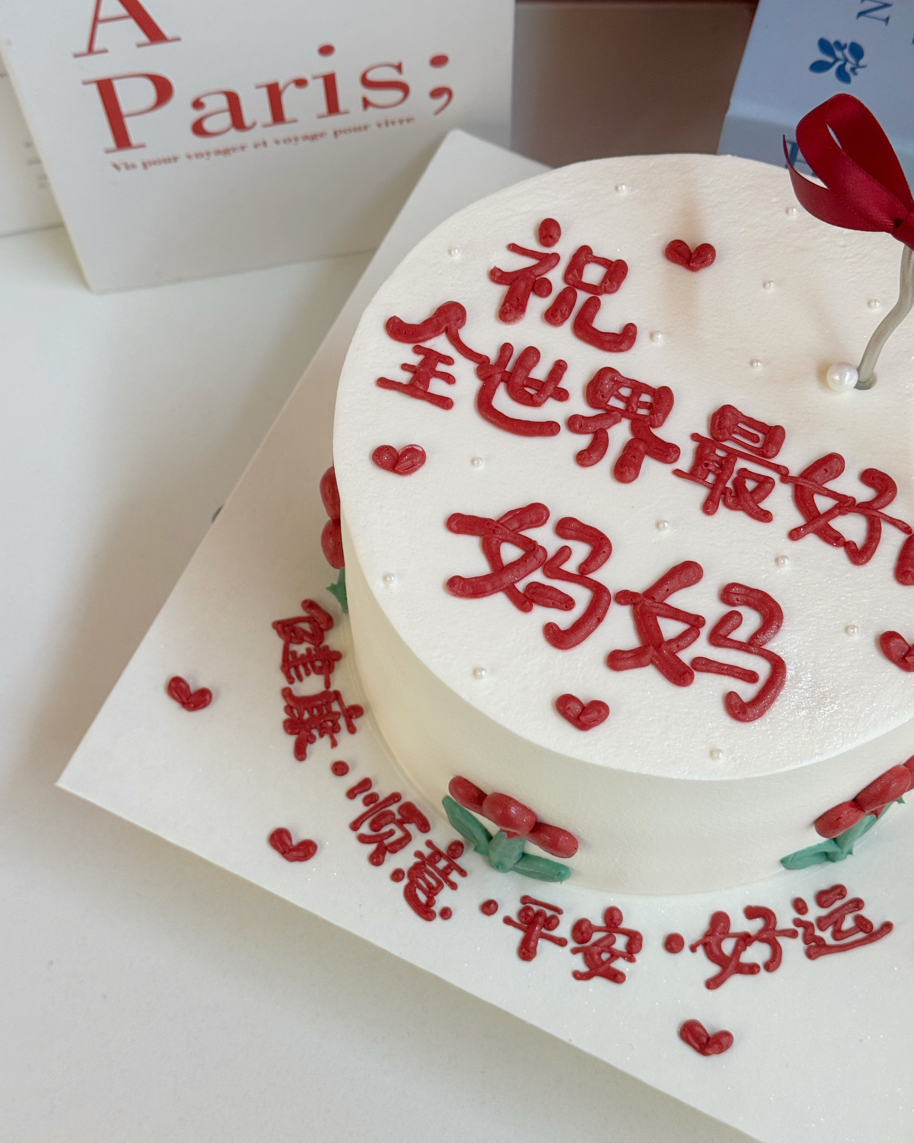 此款蛋糕为鲜奶油蛋糕,文字和小涂鸦为奶油霜成分。 我们会根据您不同尺寸的选择去随机搭配适量的装饰。