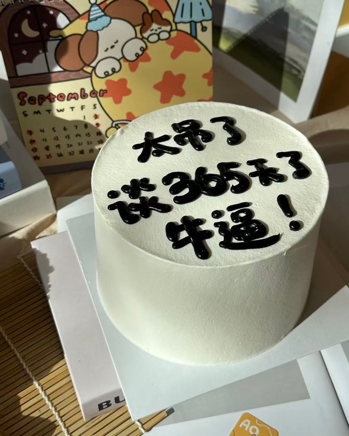 此款蛋糕为鲜奶油蛋糕,文字部分为奶油霜成分。 我们会根据您不同尺寸的选择去随机搭配适量的装饰。