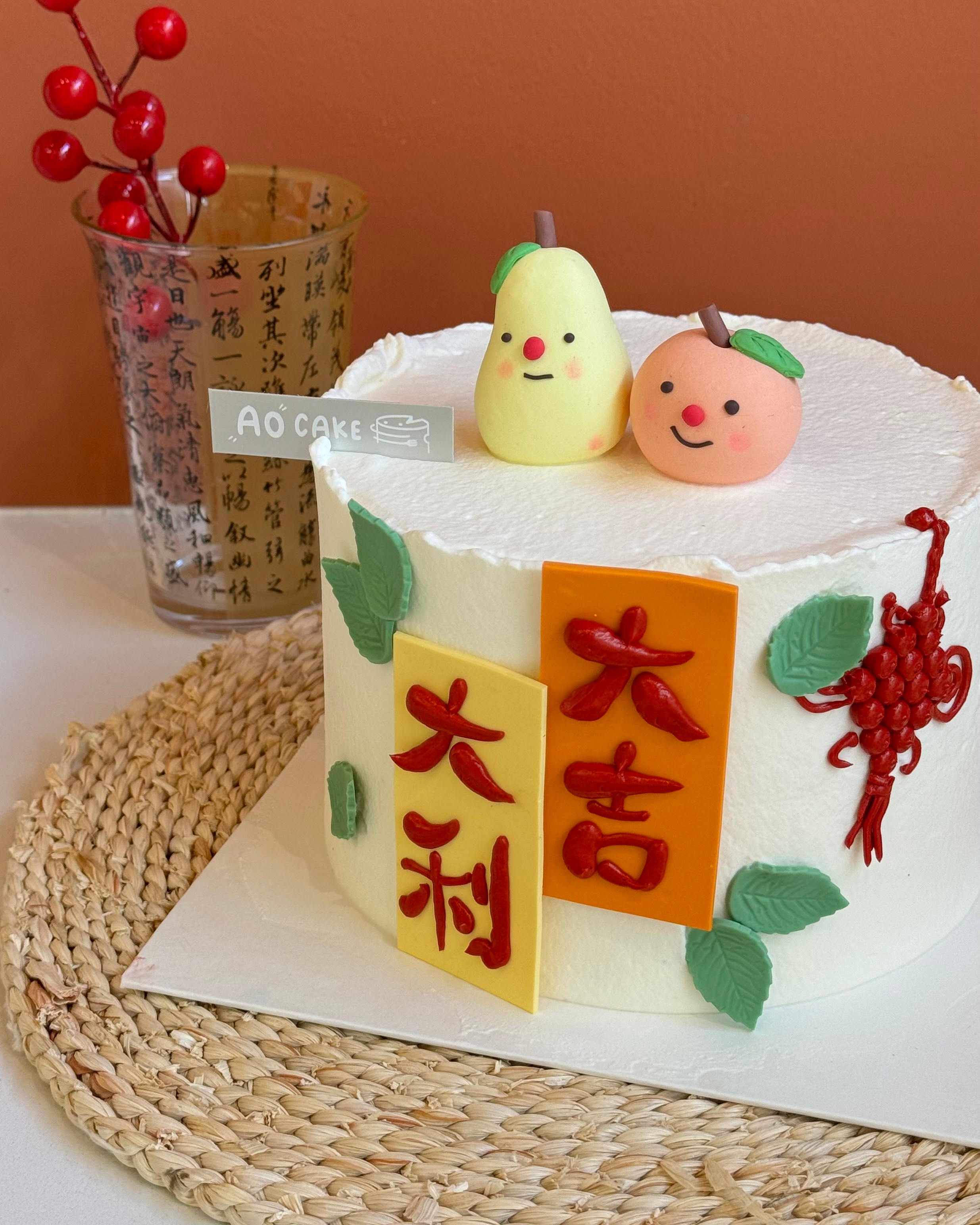 此款蛋糕为鲜奶油蛋糕,文字和侧面裱花部分为奶油霜成分。 注意:此款蛋糕由于玩偶尺寸的限制,因此暂时只能制作6寸。