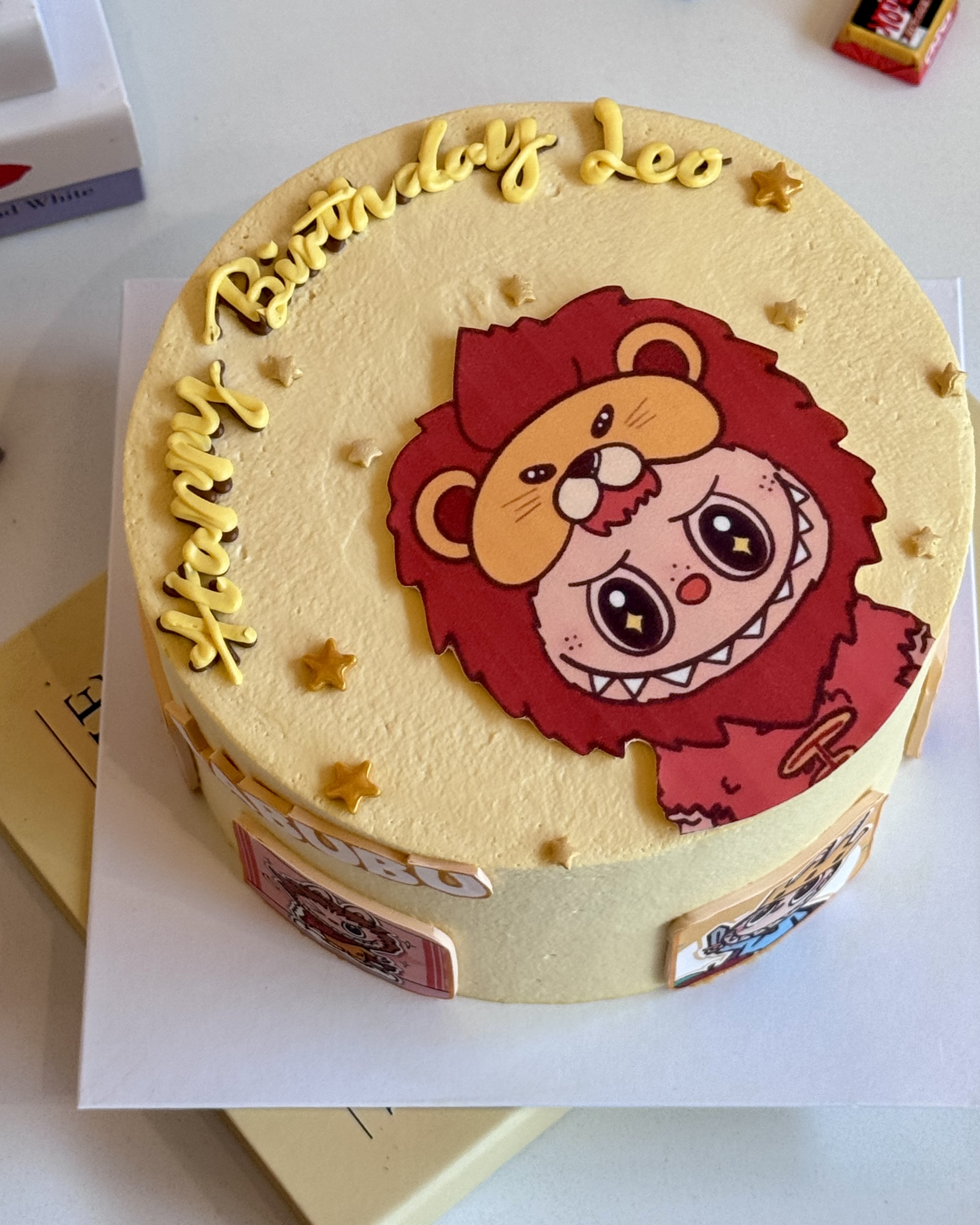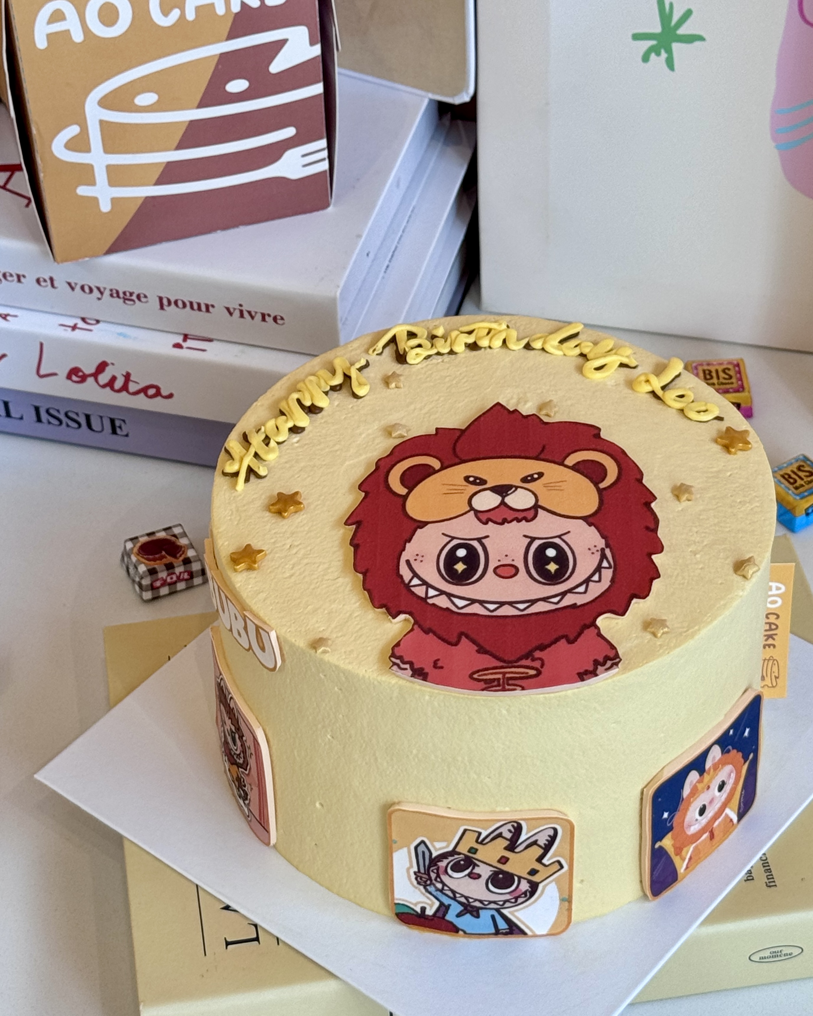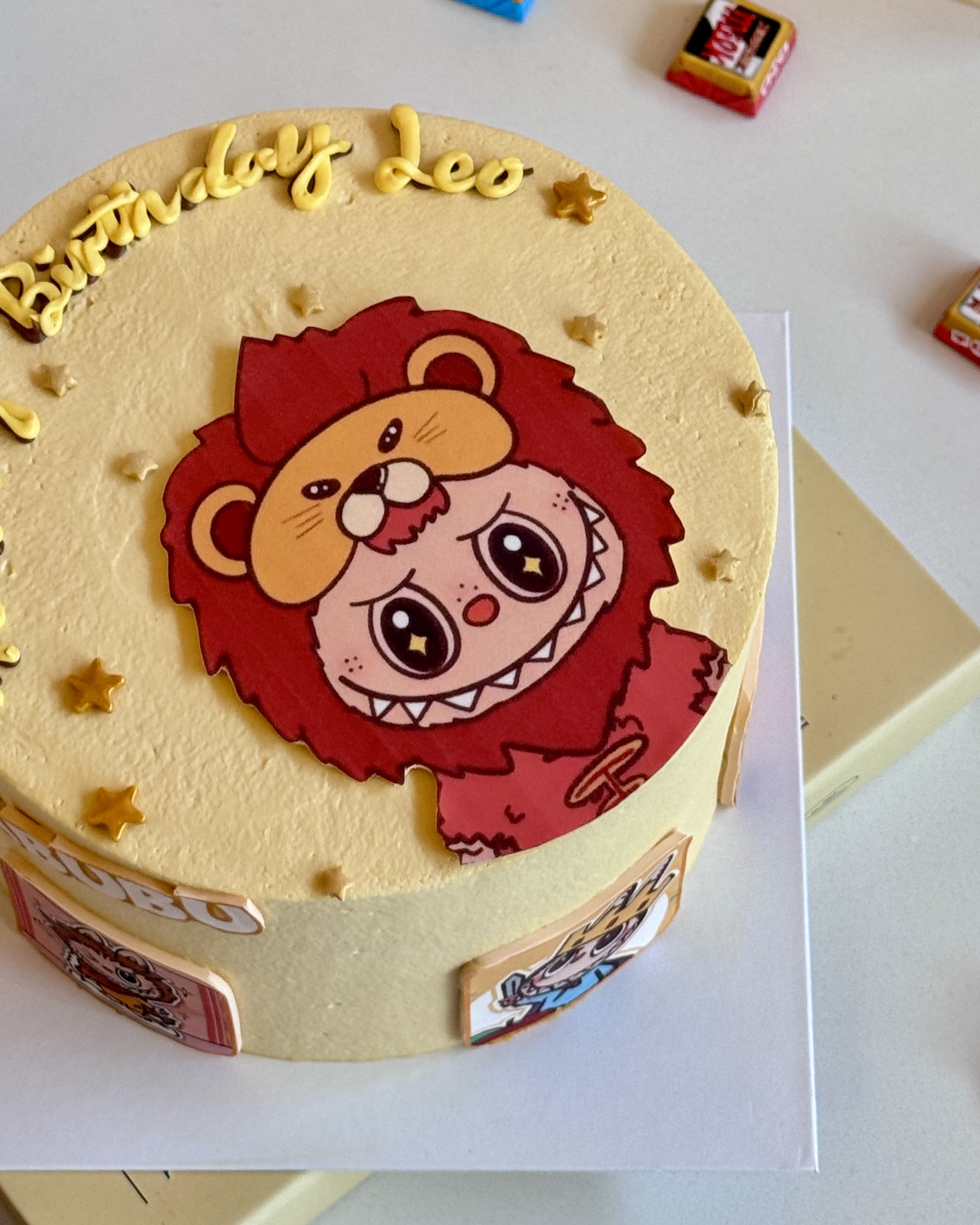 此款蛋糕为鲜奶油蛋糕,文字为奶油霜成分。 我们会根据您不同尺寸的选择去随机搭配适量的装饰。 注意:图片中的Labubu图片为可食用的糯米纸材质, 糯米纸虽然是可食用材料,但本身并没有什么味道;如果您不想吃的话可以揭下来。 该蛋糕将会包括顶部和侧面一共6个糯米纸图片。