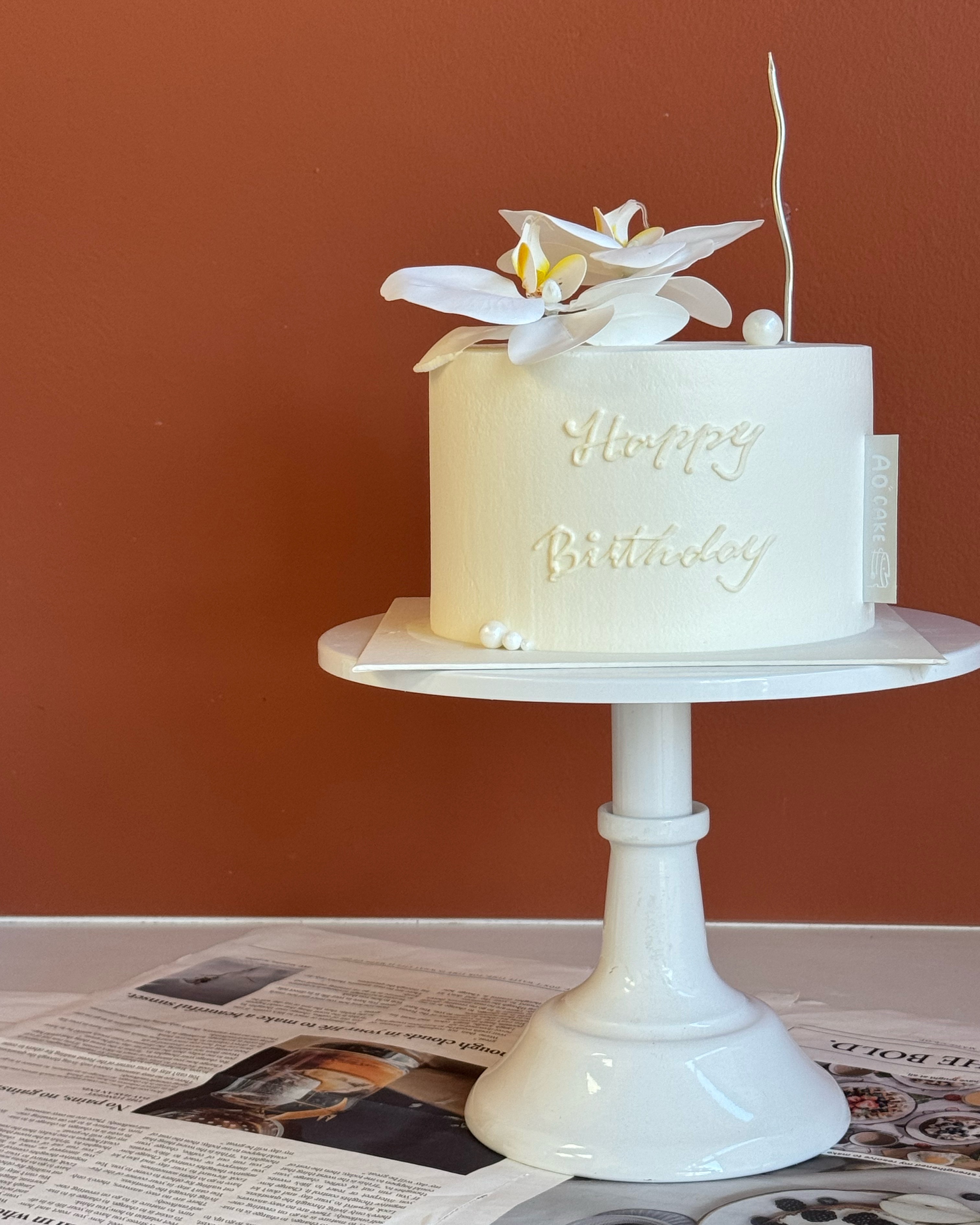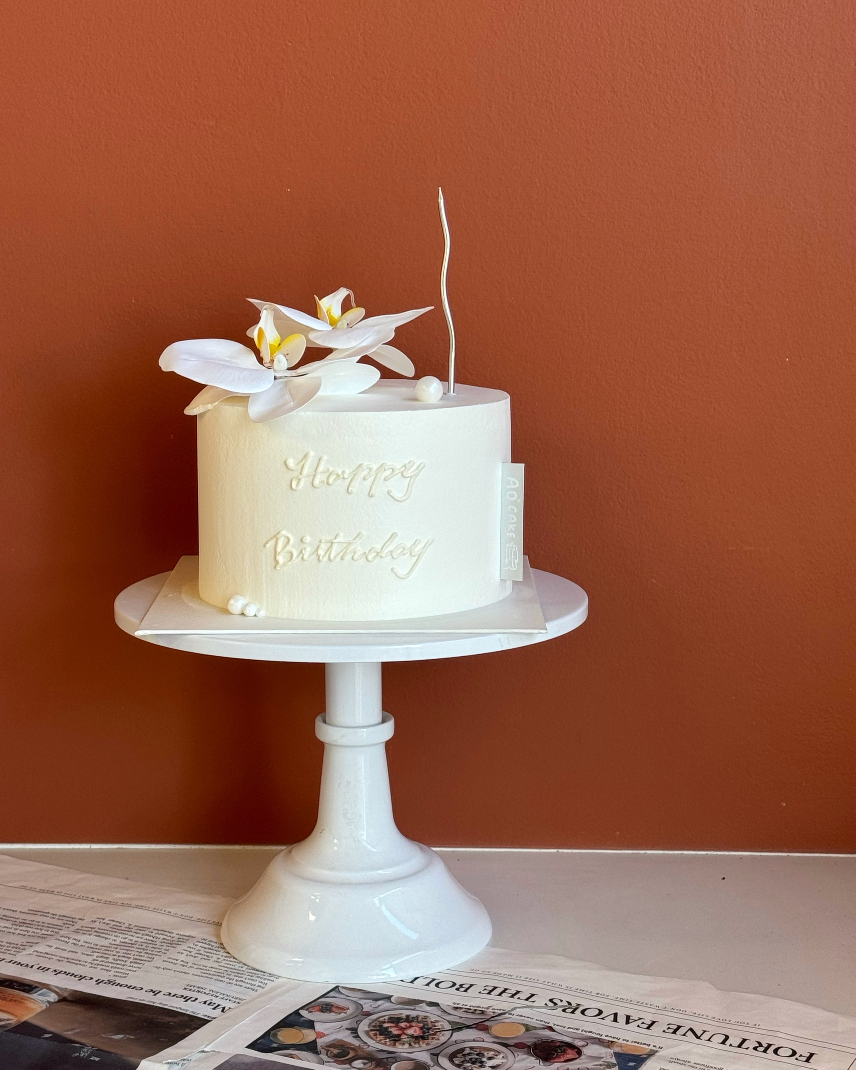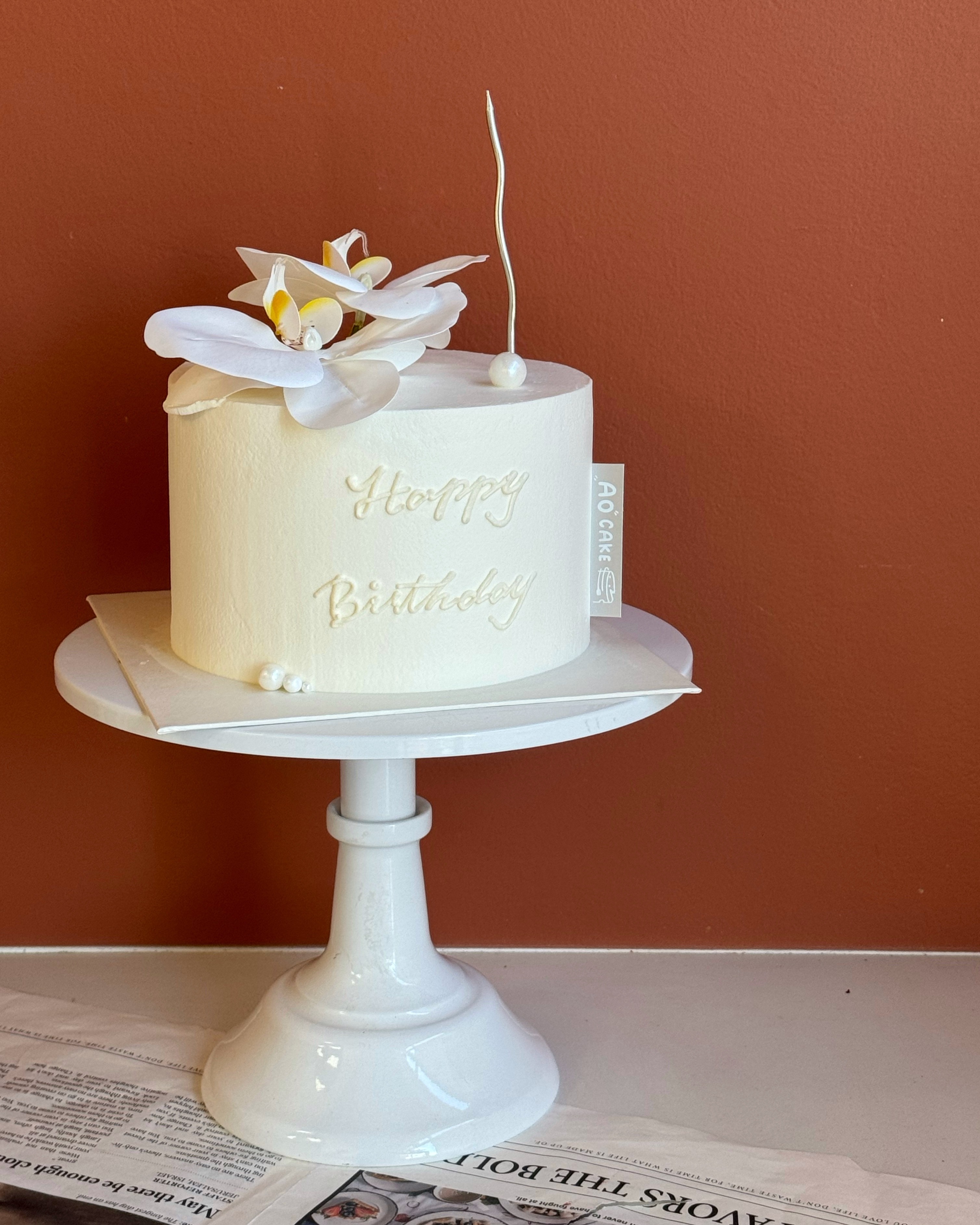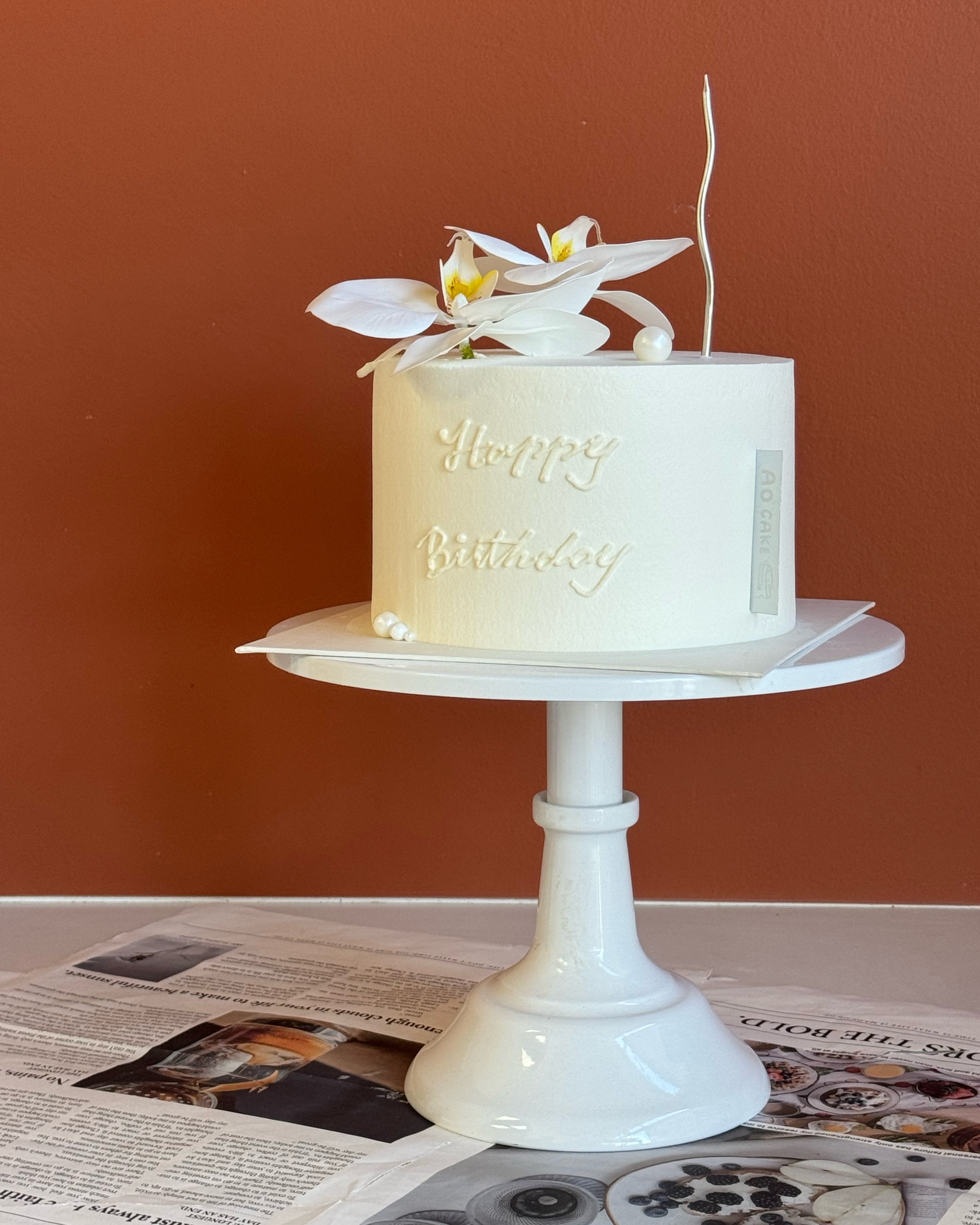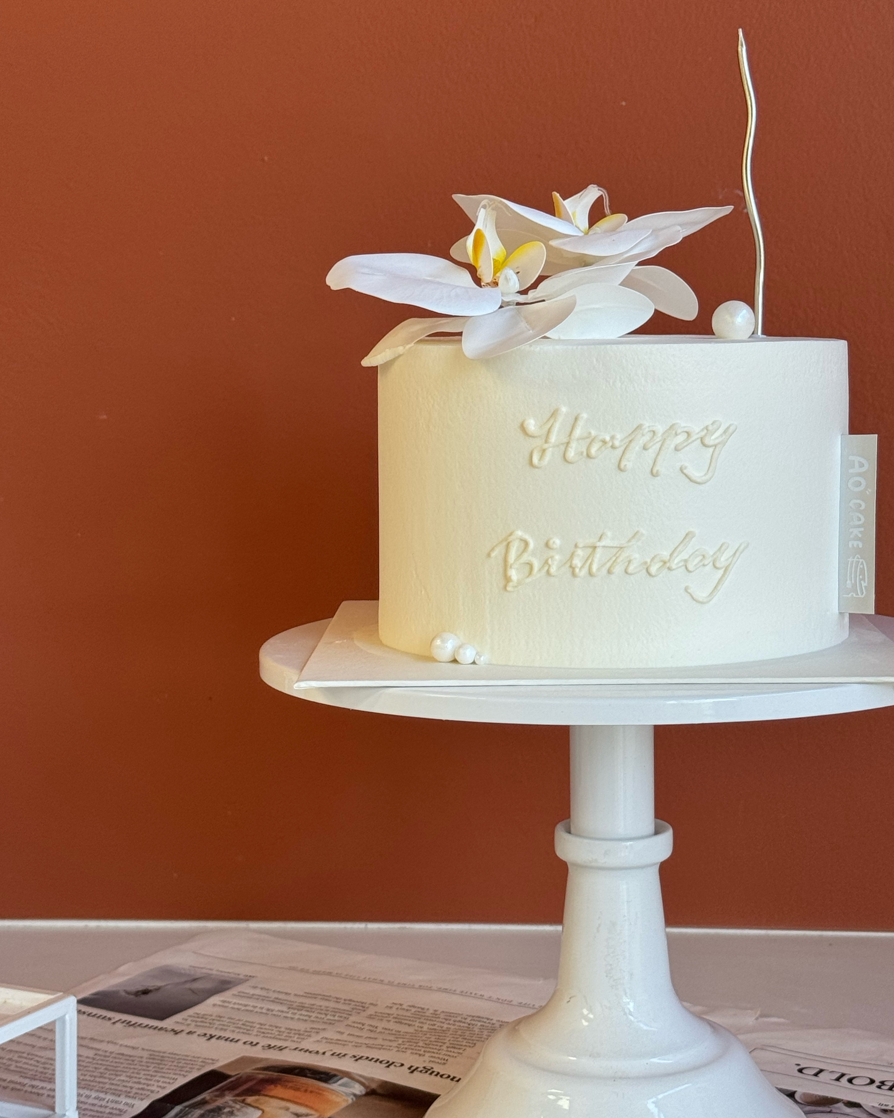 此款蛋糕为鲜奶油蛋糕,文字为奶油霜成分。 我们会根据您不同尺寸的选择去随机搭配适量的装饰。 注意:此款蛋糕的蝴蝶兰为仿真花,不是真花。