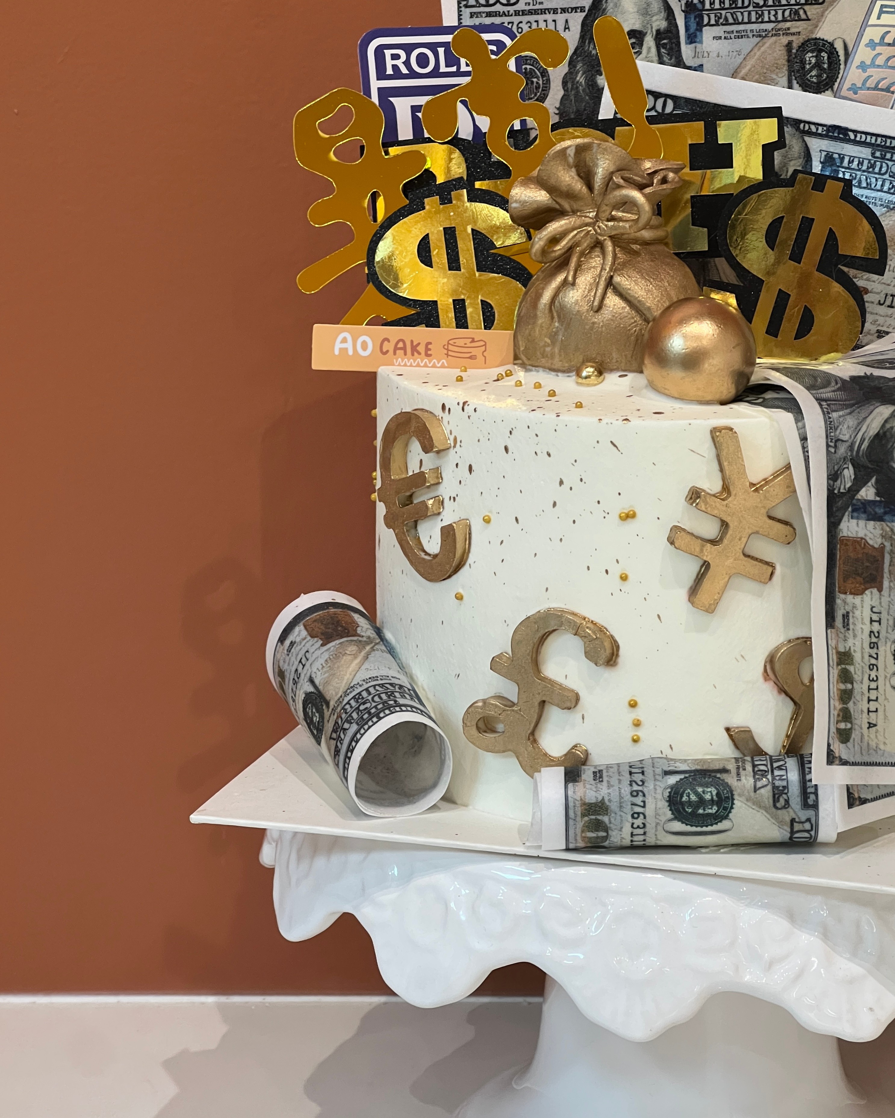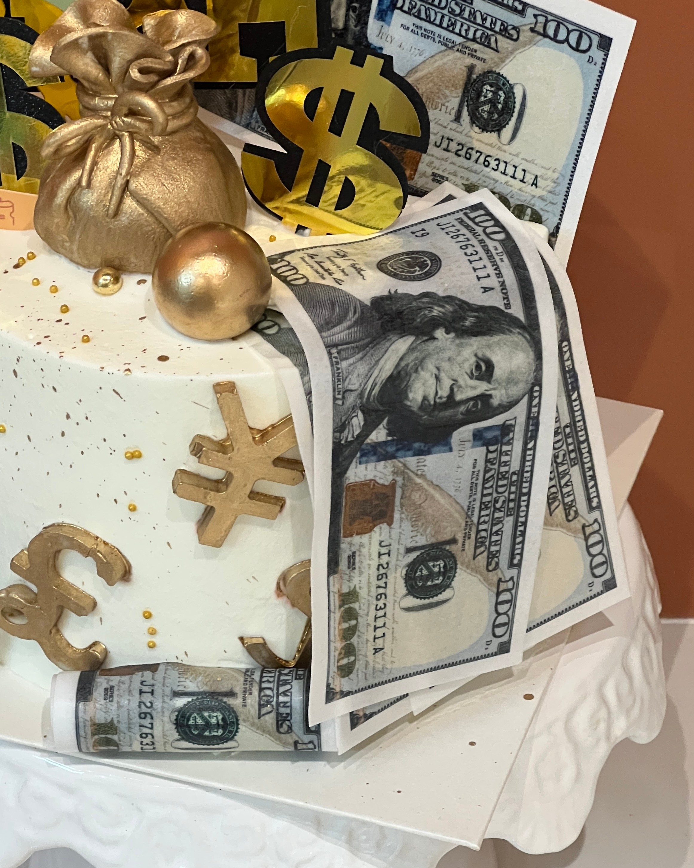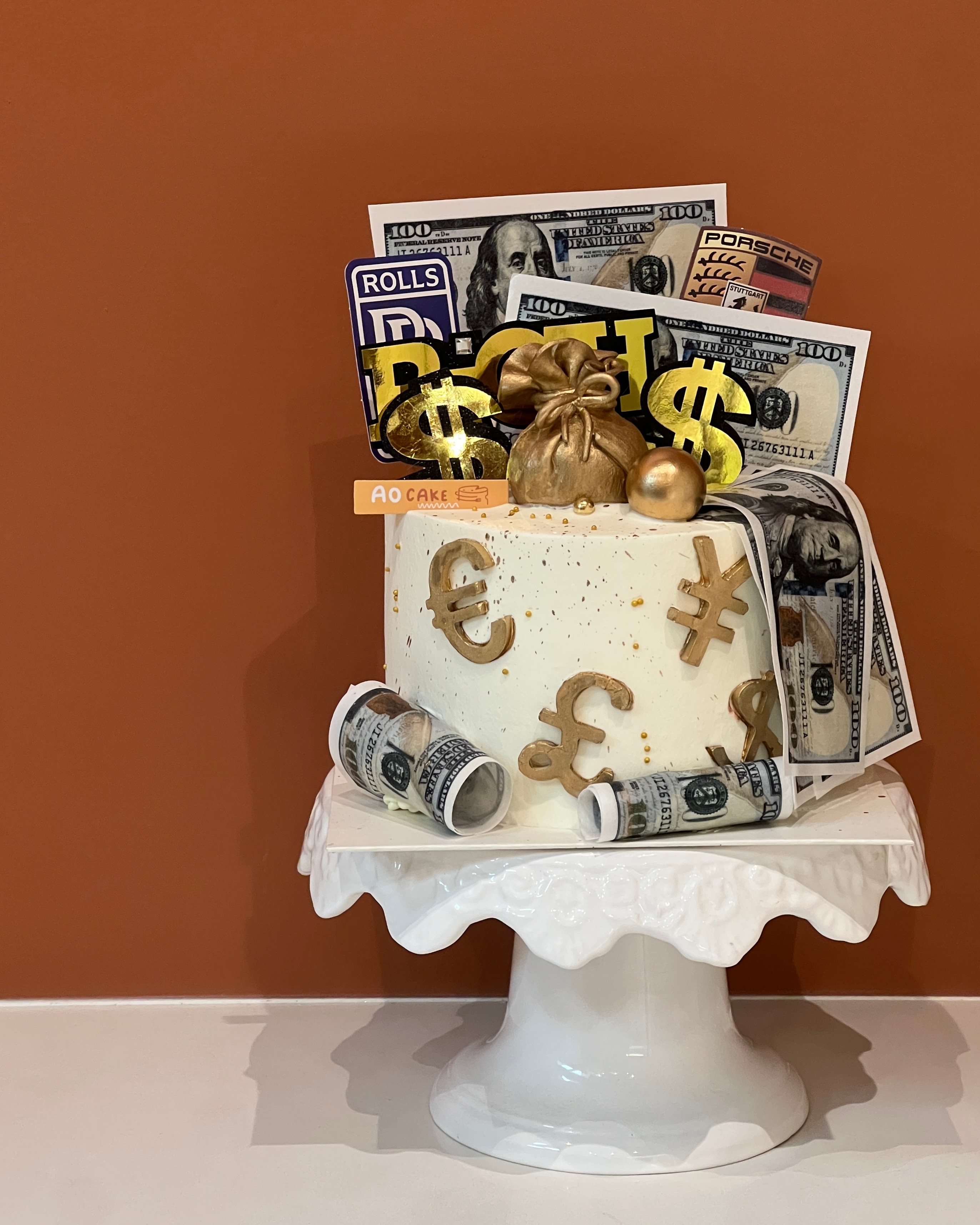 此款蛋糕为鲜奶油蛋糕,不包含任何奶油霜成分。 我们会根据您不同尺寸的选择去随机搭配适量的装饰。 注意:图片中的美金为可食用的糯米纸材质,糯米纸在冰箱中因为湿度较大的关系会出现轻微软化,这个是正常情况。 糯米纸虽然是可食用材料,但本身并没有什么味道;如果您不想吃的话可以揭下来。