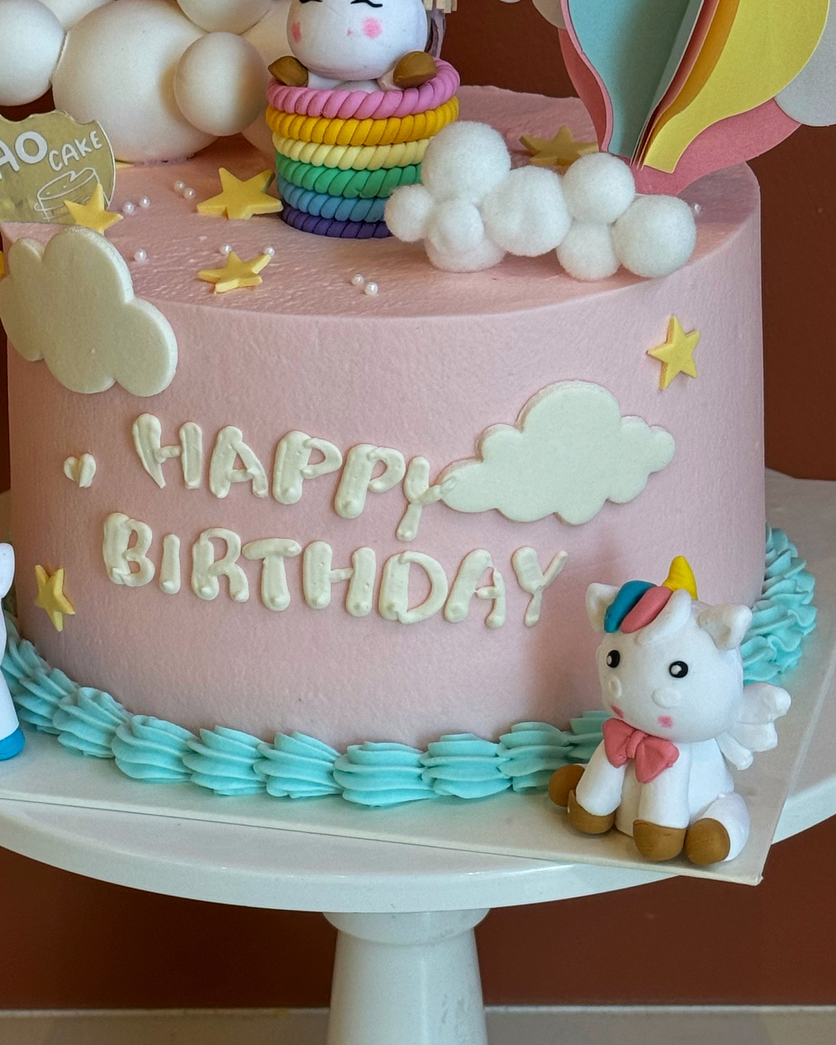此款蛋糕为鲜奶油蛋糕,侧面文字和底部裱花为奶油霜成分。 我们会根据您不同尺寸的选择去随机搭配适量的装饰。