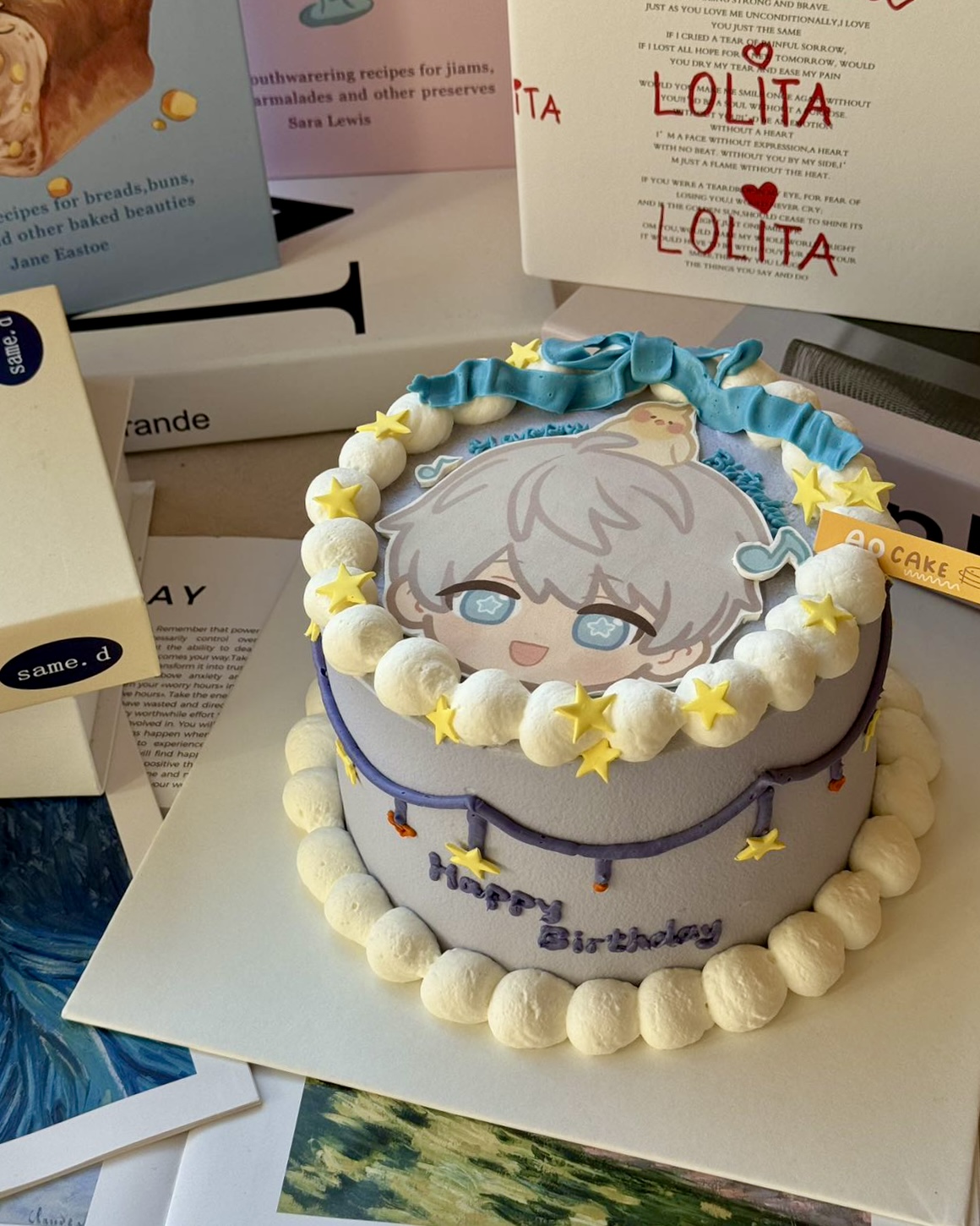 此款蛋糕为鲜奶油蛋糕,侧面裱花和文字为奶油霜成分。 我们会根据您不同尺寸的选择去随机搭配适量的装饰。 注意:图片中的沈星回图片为可食用的糯米纸材质, 糯米纸虽然是可食用材料,但本身并没有什么味道;如果您不想吃的话可以揭下来。